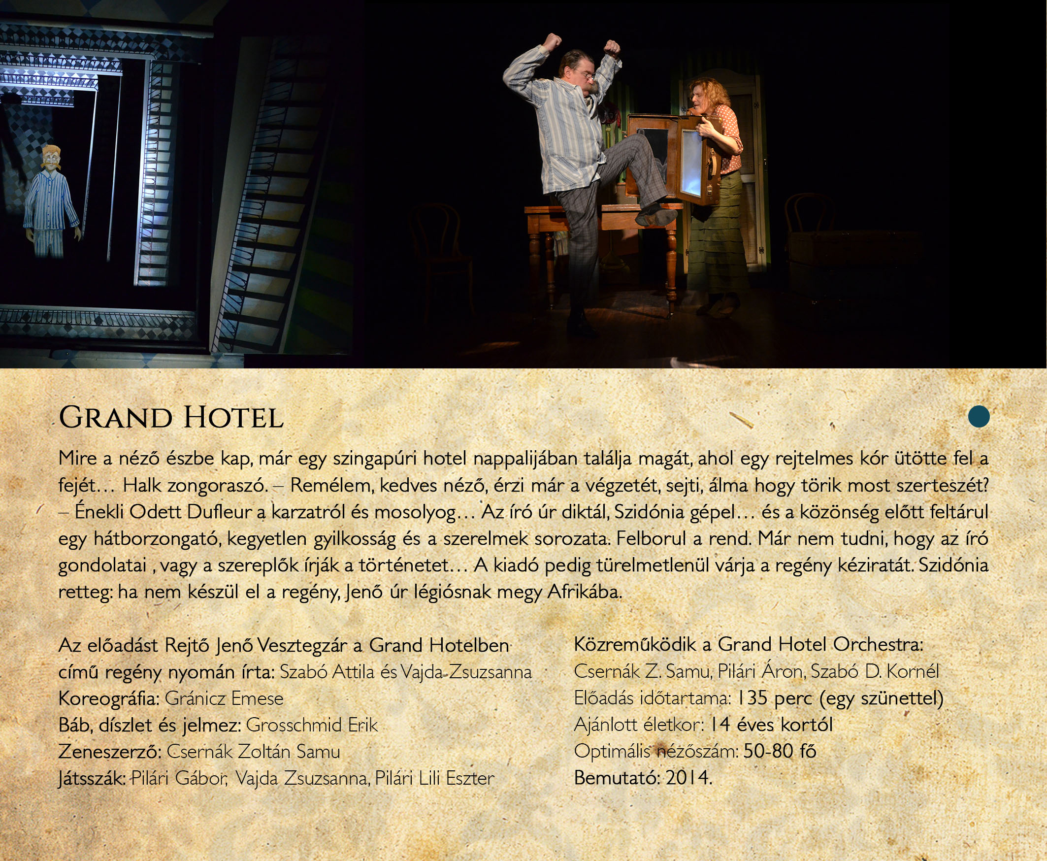 Grand Hotel című előadásunkra a Szoba Ára: 3450 Ft/fő