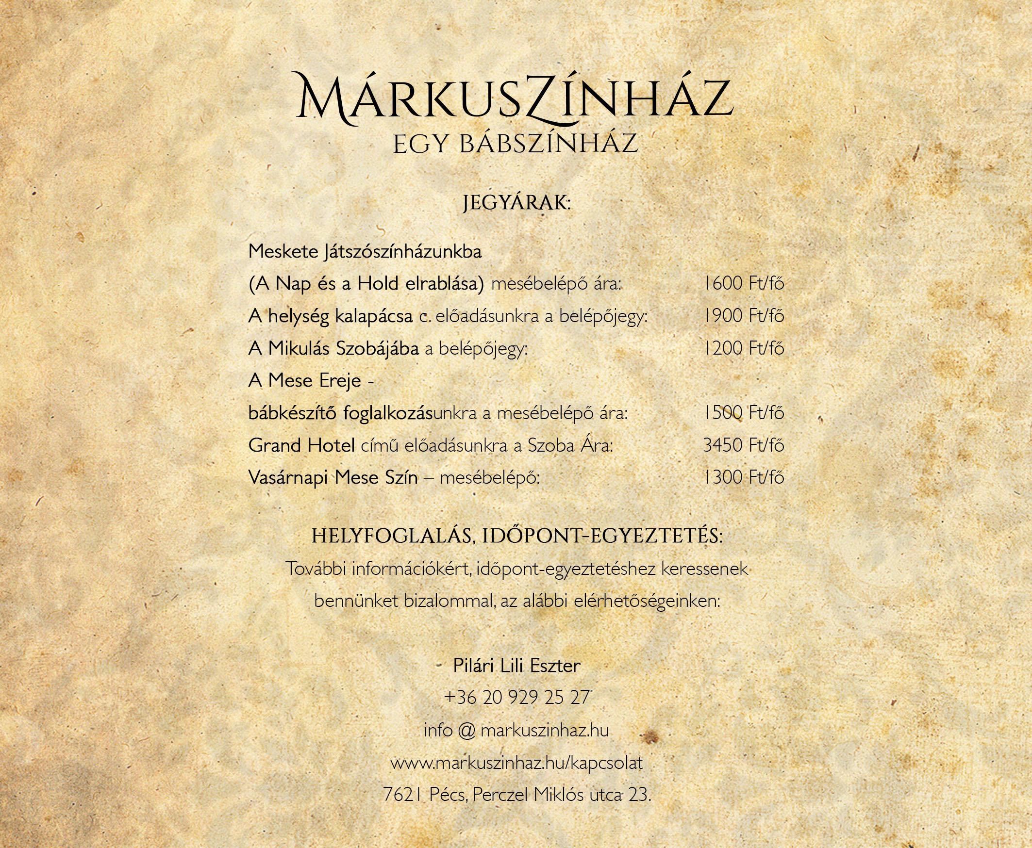Jegyek, Bérletek, Márkus Színi előadások