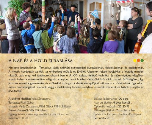 Ajánljuk figyelmetekbe A Nap és a Hold elrablása játszószínházi előadásunkat, Bábkészítő műhelyünket, és a Mese ereje foglalkozásunkat! További információkért keressetek bennünket bizalommal!